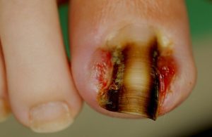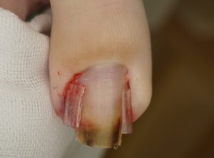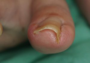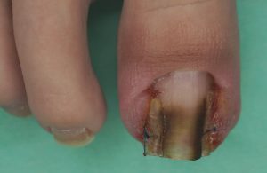 来院時、爪周囲が腫れて痛みがあり、爪も変色していました。