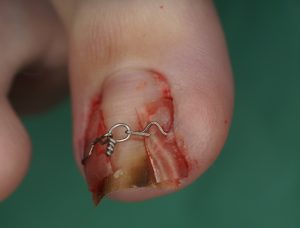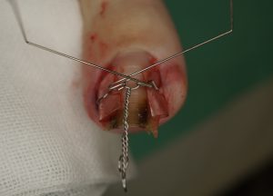 爪の食い込みによる周囲の炎症の治療のためワイヤーにより爪の変形の矯正をすることにしました。