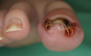 爪の両側にチューブを入れて抜けないように爪と糸で固定して炎症はかなり改善しました。