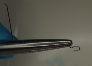 爪が長期にわたる周囲の炎症の分泌物により軟化していましたので、チューブで爪の両端を保護してワイヤーを掛けました。