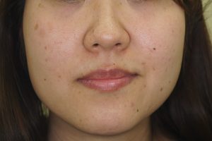 レーザー照射後に紫斑ができる事があり約2週間は目立ちますがその後消失します。